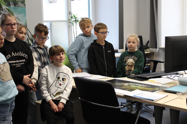Im Rahmen des HSU-Unterrichts besuchten die vierten Klassen das Rathaus der Gemeinde Jettingen-Scheppach. Bei der Führung durch das Gebäude lernten sie die verschiedenen Ämter kennen und erfuhren, welche Aufgaben dort erledigt werden. Zum Abschluss durften sie im Sitzungssaal dem Bürgermeister ihre Fragen stellen.