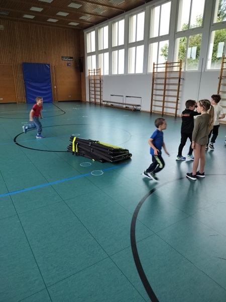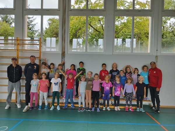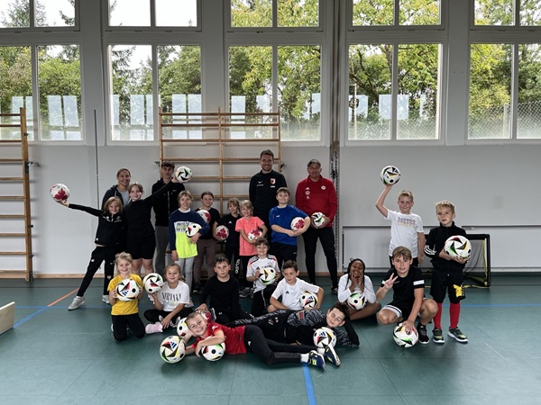 Wir durften das DFB-Mobil an unserer Grundschule begrüßen, ein spannendes Event, das die Kinder für den Fußball begeistern soll. Unter der Anleitung des DFB-Trainers Herrn Heumader starteten die Schülerinnen und Schüler mit verschiedenen Aufwärmübungen, die für viel Bewegung und Freude sorgten. Anschließend wurde das Passspiel geübt, wobei die Kinder ihre Fähigkeiten im Passen und Zuspielen verbessern konnten.