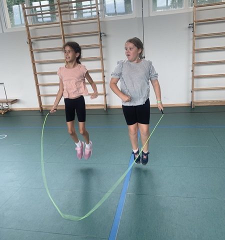 Mit viel Begeisterung und Bewegung wurden verschiedene Sprungvariationen ausprobiert – alleine, zu zweit oder in der Gruppe. Ganz nebenbei förderte das Rope Skipping nicht nur die Ausdauer und Koordination der Kinder, sondern machte auch jede Menge Spaß!